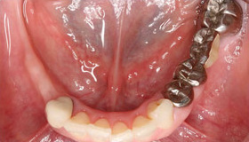2次オペ時に、インプラント周囲の歯肉が、引っ張ると動く弱い粘膜であったために、固くて丈夫な歯肉の移植手術を行っています。